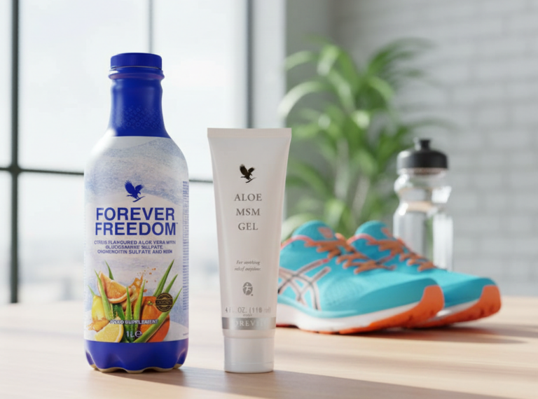 Forever Freedom *: Das ist mein absoluter Star für die Gelenke. Es kombiniert 89 % reines Aloe Vera Gel mit Glucosaminsulfat, Chondroitinsulfat und MSM. Es liefert die Bausteine für den Knorpel und hilft gleichzeitig, die Entzündungsreaktionen im Gelenkspalt durch die Kraft der Aloe zu modulieren.
